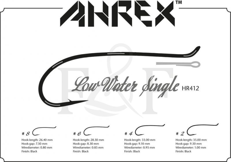 The slightly curved shape of the HR412 matches the style of lowwater flies and speyflies nicely. Classic lowwater design with a tapered loop-eye.