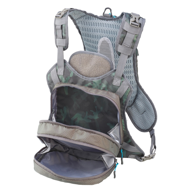 Esta amplia mochila de pecho ofrece una amplia capacidad de almacenamiento con dos amplios bolsillos frontales compartimentados con cremallera YKK®, además de un bolsillo de parche con cremallera en la parte delantera. La mochila desmontable incluye un gran bolsillo forrado con un bolsillo de parche con cremallera. La parte delantera y la mochila cuentan con numerosas presillas para colgar, una amplia zona de velcro inspirada en nuestra popular mochila de pecho Competition y una anilla en D en la parte trasera para sujetar la red de aterrizaje. Todas las zonas en contacto con el cuerpo están hechas de malla de espuma para una rápida absorción de la humedad. El tejido es de camuflaje repelente al agua con refuerzos de panal. Talla única, ajustable con correas.