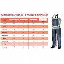 Disponible en 9 tailles différentes, ce wader garantit un ajustement parfait pour tous les pêcheurs.