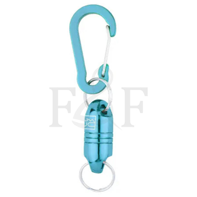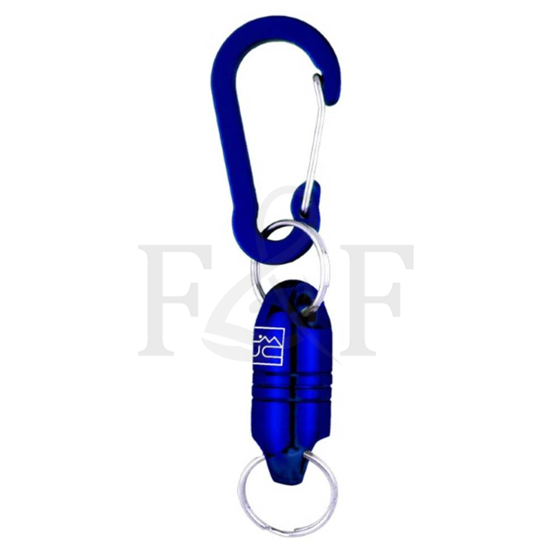 Clip magnetica per guadino, realizzata in alluminio T6, include un moschettone e un magnete con una forza di tenuta di 3,5 kg e 5 kg. È perfetta per fissare il guadino al giubbotto o alla giacca.