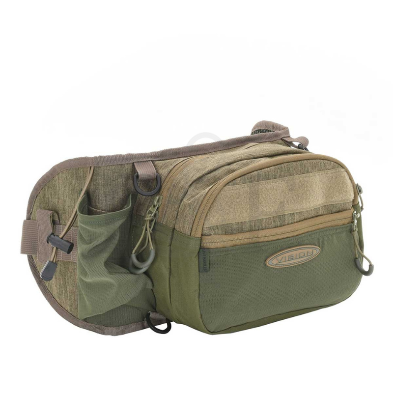 Love Handles non è solo una tradizionale borsa da cintura, ma puoi anche usarla all'altezza del petto grazie al cordino regolabile. Ci sono due clip di plastica che possono essere utilizzate per fissare la borsa ai passanti a D dei nostri waders o alla parte anteriore del nostro Aqua Day Pack. Questa borsa è sufficientemente ampia sui lati per offrire supporto anche con carichi più pesanti e mantenerla stabile. C'è un anello a D nel cordino per fissare il guadino. Il velcro in aree specifiche consente di fissare e posizionare i porta accessori rimovibili a seconda delle esigenze.