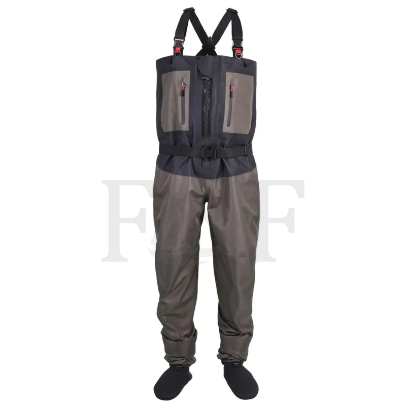 Membrana impermeável e respirável de 4 camadas – Classificação de impermeabilidade de 20.000 mm – Classificação de respirabilidade de 7.000 MVP • Costuras posicionadas longe das zonas de fricção – Versão com fecho com sistema TIZIP e grande bolso frontal com fecho – Correias para acessórios • Botas de neoprene de dupla densidade de 4 mm • Cinto de vadeio • Suspensórios elásticos ajustáveis – Disponíveis em 9 tamanhos – Ajuste perfeito.